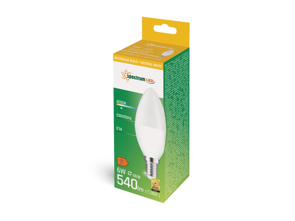 LED žiarovka svieca E-14 230V 6W neutrálna biela, SPECTRUM WOJ13758