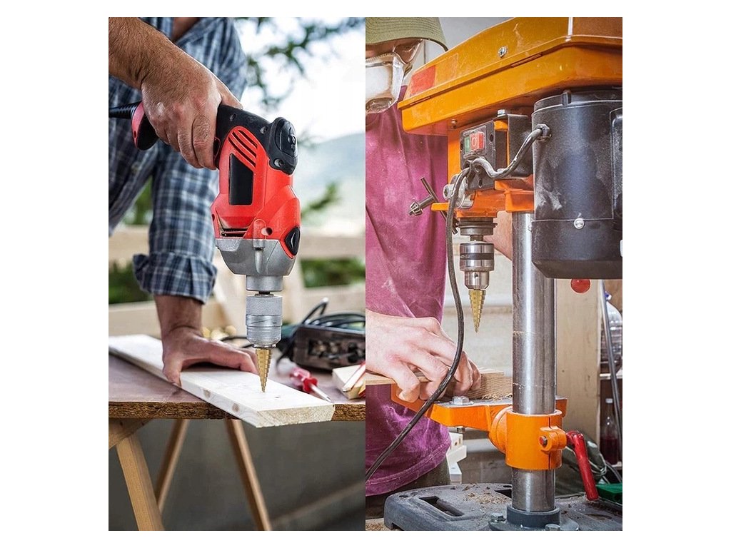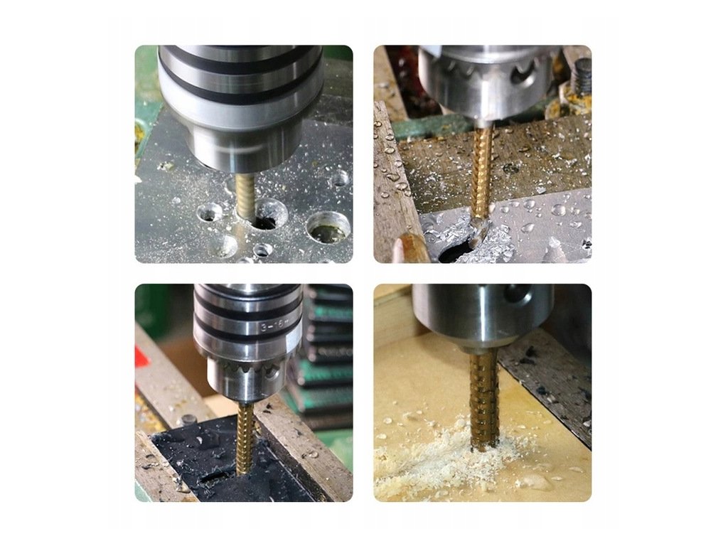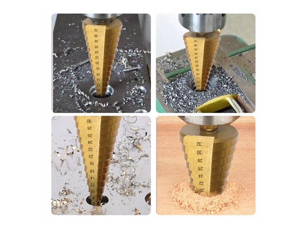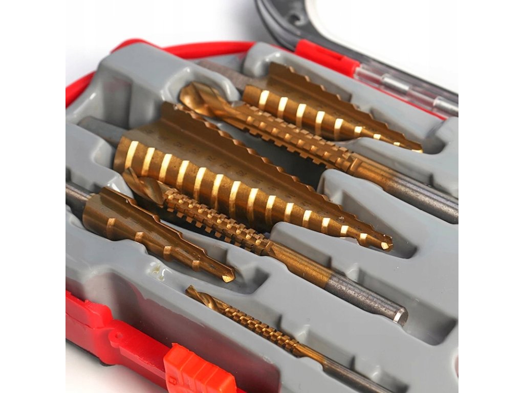 Univerzálne frézové vrtáky na kovy 3+3 ks., Verke V05051Stupňovité kužeľové špirálové vrtáky vyrobené z vysoko kvalitnej rýchloreznej ocele HSS4241 pokryté povlakom z nitridu titánu.