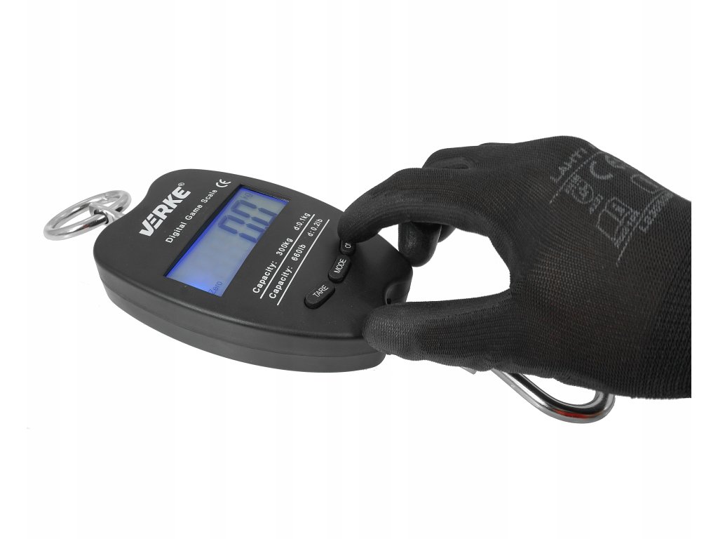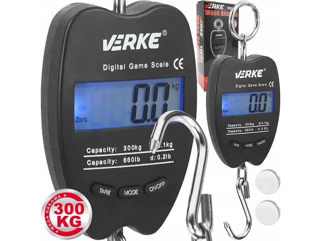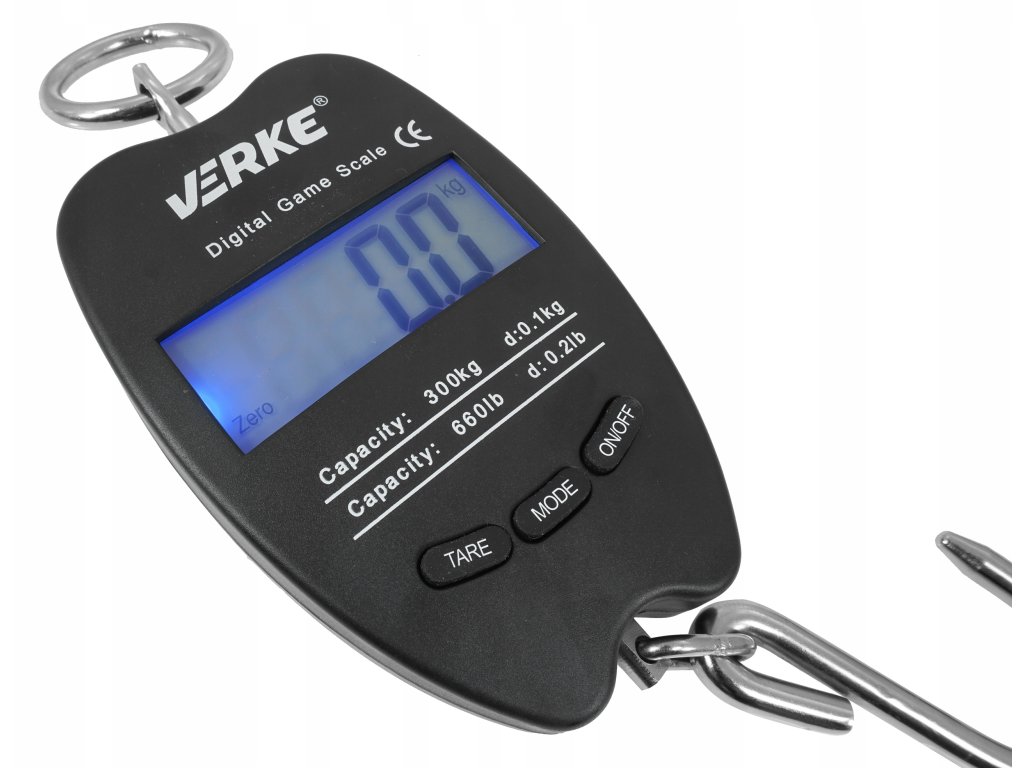 Závesná váha má rozsah váženia až do 300 kg s presnosťou 100 g. Zariadenie disponuje veľkým a jasným LCD displejom s podsvietením.