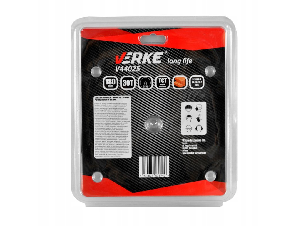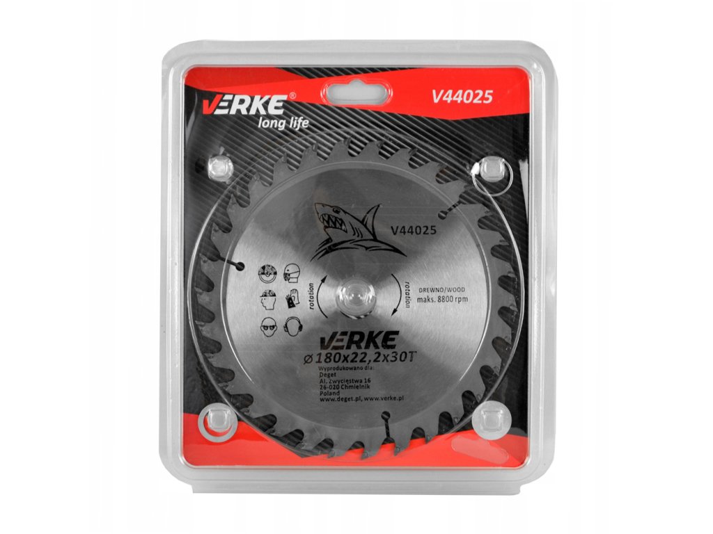 Vidiový kotouč 180mm*22,2mm*30T, Verke V44025Vidiový kotouč je určen pro řezání dřeva a všech materiálů na bázi dřeva, včetně překližek, desek, prken, kmenů či větví, a také měkkých plastů. Ostří z karbidu zajišťuje dlouhou životnost nástroje a umožňuje opakované ostření.