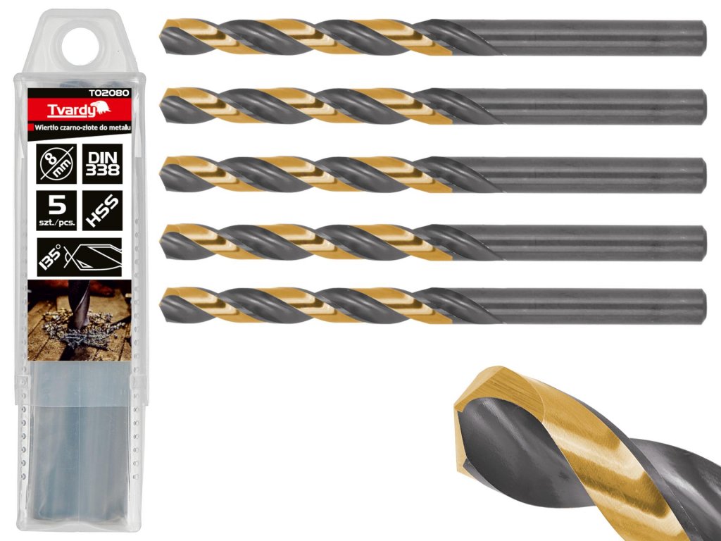 Vrták do kovu HSS TiN, DIN 338, 8mm, 5ks, TVARDY, Geko T02080