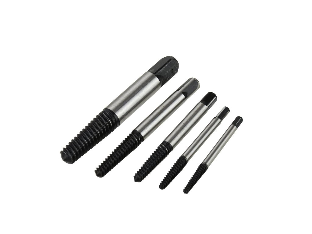 Súprava piatich vyťahovákov rôznych veľkostí určených na odstránenie zlomených, alebo inak poškodených skrutiek, čapov atď.